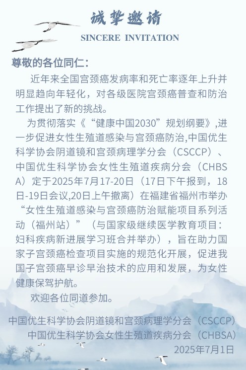 2025 年 7 月 17 日至 20 日,由中國優(yōu)生科學協(xié)會陰道鏡和宮頸病理學分會(CSCCP)、中國優(yōu)生科學協(xié)會女性生殖道疾病分會(CHBSA)主辦的 “女性生殖道感染與宮頸癌防治賦能項目系列活動(福州站)” 將在福建省福州市召開。該活動與國家級繼續(xù)醫(yī)學教育項目 “婦科疾病新進展學習班” 合并舉辦,旨在助力國家子宮頸癌檢查項目規(guī)范化實施,促進宮頸癌早診早治技術應用與發(fā)展,為女性健康保駕護航。經確認,中藥制劑派特靈受邀出席,將參與女性下生殖道人乳頭瘤病毒(HPV)感染及相關疾病專家共識解讀環(huán)節(jié)。