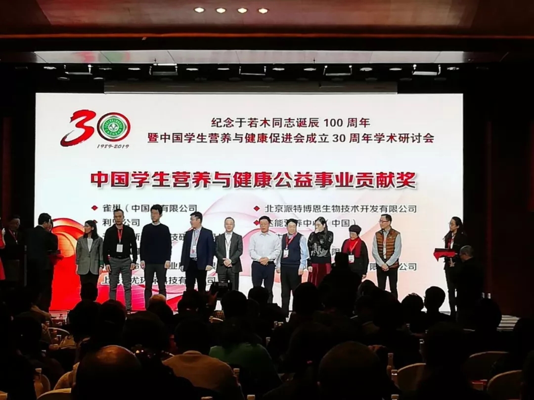 2019年1月12日,紀(jì)念于若木同志誕辰100周年暨中國學(xué)生營養(yǎng)與健康促進會成立30周年學(xué)術(shù)研討會在京舉行。 大會頒發(fā)了中國學(xué)生營養(yǎng)與健康事業(yè)突出貢獻獎、中國學(xué)生營養(yǎng)與健康事業(yè)優(yōu)秀個人獎、中國學(xué)生營養(yǎng)與健康公益事業(yè)貢獻獎等獎項。其中,派特生物被大會授予“中國學(xué)生營養(yǎng)與健康公益事業(yè)貢獻獎”。