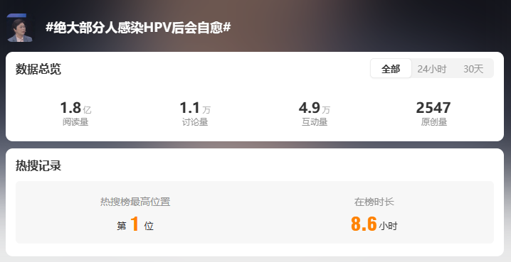 4月15日至21日是第30個(gè)全國(guó)腫瘤防治宣傳周,在此期間微博上的一條熱搜引起了廣泛的關(guān)注——“絕大部分人感染HPV后會(huì)自愈”。